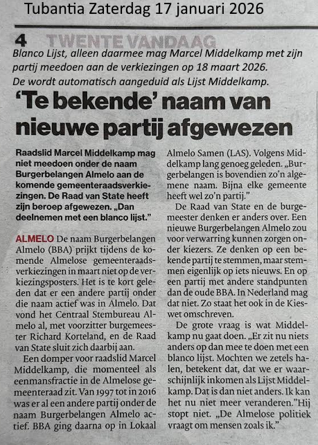 Blanco Lijst, alleen daarmee mag Marcel Middelkamp met zijn partij meedoen aan de verkiezingen op 18 maart 2026. De wordt automatisch aangeduid als Lijst Middelkamp.